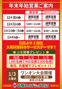 年末年始は休まず営業いたしますが、お正月三が日は営業時間が当雨情とは異なりますの… 続きを読む >>